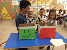 Como actividad inicial, les pondremos dos cajas con una con cara triste y otra alegre y de esta manera tendrán que decidir si los alimentos son saludables o no saludables e introducirlos en la caja correspondiente.